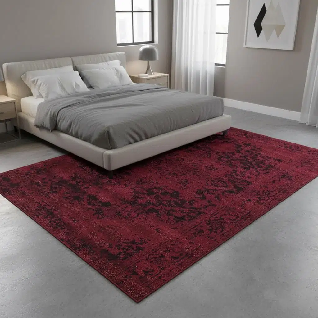 Antik desenli bordo halı, geleneksel halı motiflerini modern eskitme dokusuyla bir araya getirerek yaşam alanlarına derinlik, zarafet ve karakter kazandırır. Bordo rengin asil ve sıcak etkisi, siyah eskitme detaylarla bütünleşerek güçlü ve dikkat çekici bir dekoratif vurgu oluşturur. Vintage görünümlü yüzeyi sayesinde bu antik görünümlü halı modeli, hem klasik hem de çağdaş dekorasyon stilleriyle rahatlıkla uyum sağlar.