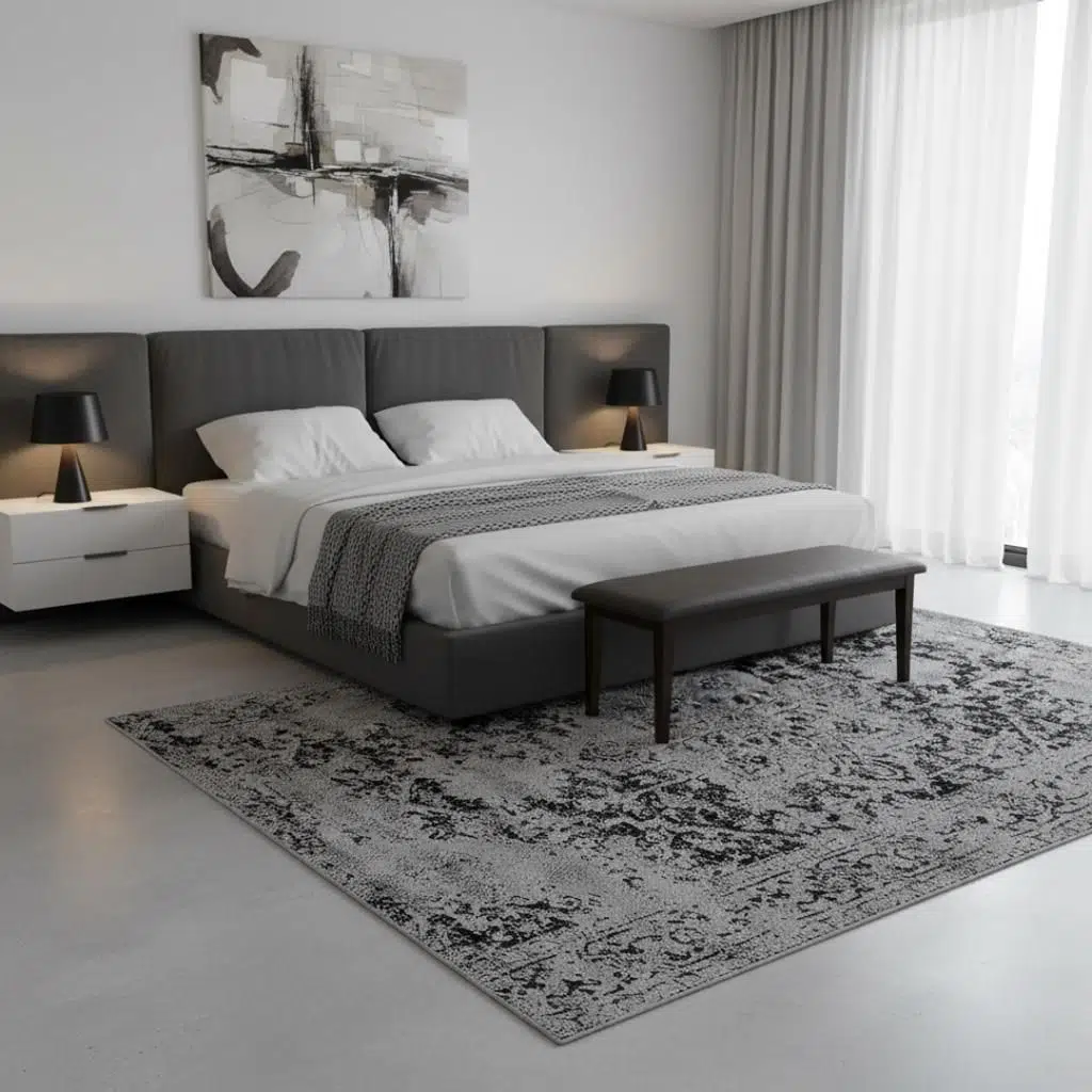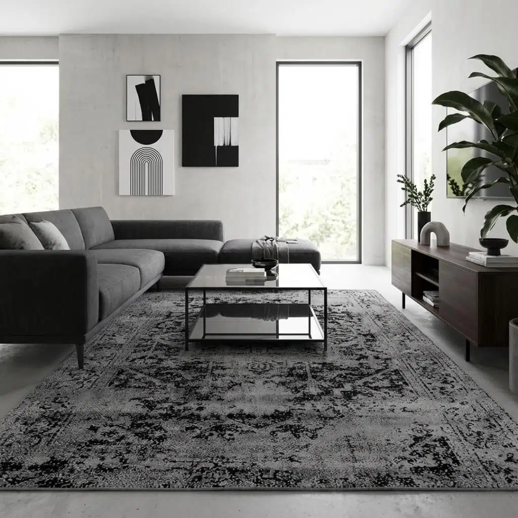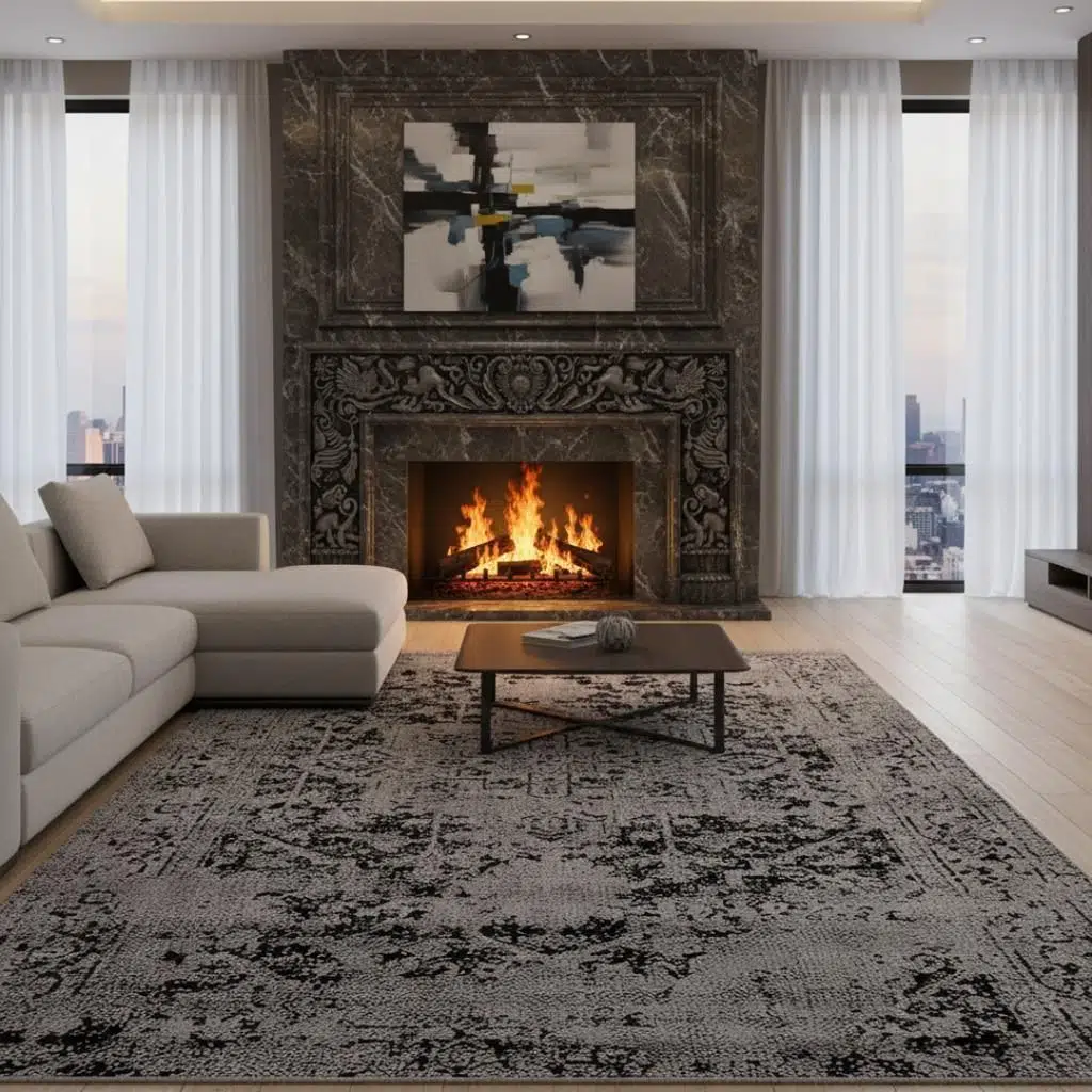 Antik desenli halı, klasik halı motiflerinin modern eskitme dokunuşlarıyla yeniden yorumlanmasıyla tasarlanmıştır. Gri ve siyah tonlarının dengeli uyumu, halıya sofistike, güçlü ve zamansız bir karakter kazandırır. Vintage görünümlü yüzeyi sayesinde bu klasik desenli halı modeli; klasik, modern ve endüstriyel dekorasyon stilleriyle rahatlıkla kombinlenebilir.