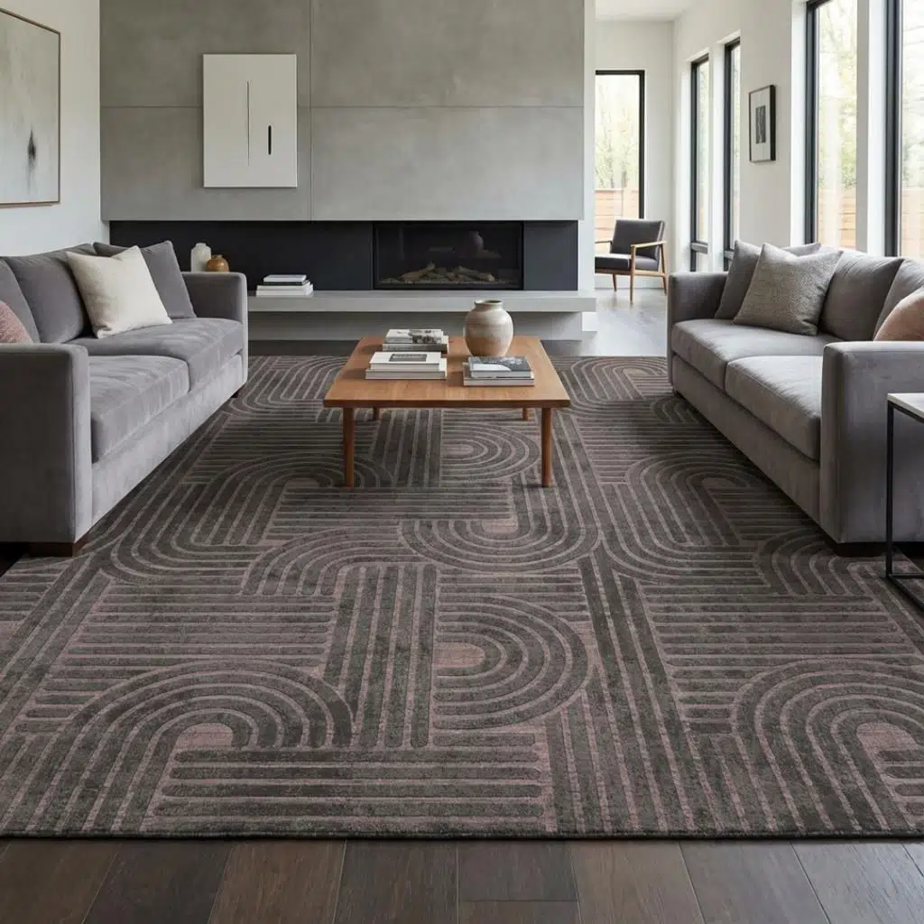 Antrasit geometrik desenli halı, derin antrasit tonları ve modern çizgileriyle yaşam alanlarına sofistike, güçlü ve çağdaş bir karakter kazandırır. Kavisli geometrik desen yapısı, mekâna ritmik bir hareket katarken koyu renk paleti sayesinde modern, endüstriyel ve minimalist dekorasyon stilleriyle mükemmel uyum sağlar. Salon, oturma odası, çalışma alanı ve ofis gibi pek çok mekânda dekoratif bir tamamlayıcı olarak tercih edilebilir.