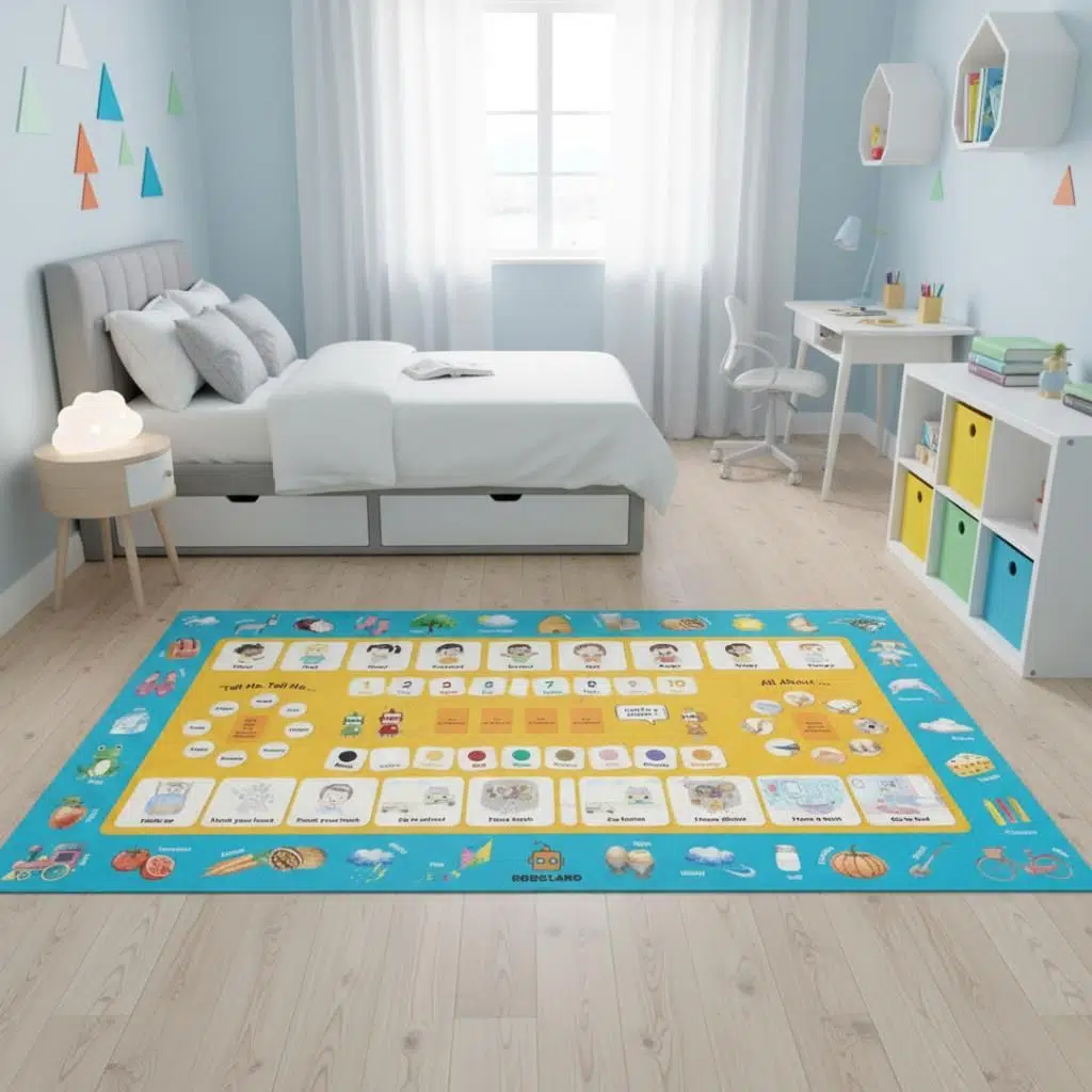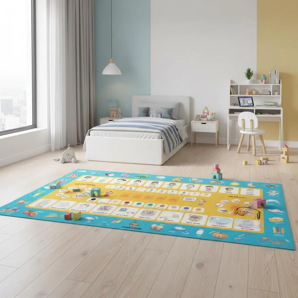 Çocuk odaları, oyun alanları ve eğitim ortamları için uygun olan bu halı, öğrenmeyi eğlenceyle birleştiren ideal bir eğitici üründür.