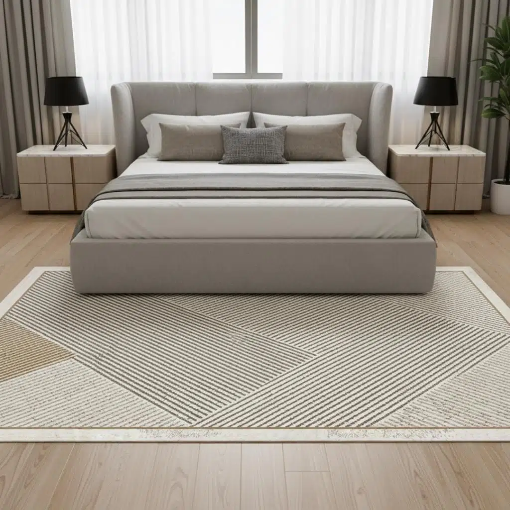 Dijital baskı teknolojisi Kaymaz taban Modern geometrik desen Kolay temizlenebilir yüzey Yumuşak ve konforlu dokunuş Evinizde yalnızca bir halı değil, aynı zamanda şıklığı ve konforu bir arada sunan özel bir tasarım hayal edin. ? Bu makine halısı, 10 mm hav yüksekliği sayesinde ayağınızın altında yumuşacık bir his bırakır ve yaşam alanlarınıza zarif bir dokunuş katar. Modern ve şık desenleriyle dekorasyonunuza değer katar, her adımda konforu hissettirir. Pamuk tabanlı yapısı, yalnızca konfor değil aynı zamanda sağlamlık ve yumuşak bir kullanım sunar. Tozumaz ve tüy çıkmaz özelliğiyle evinizde her zaman temiz ve düzenli bir görünüm sağlar. Kolay temizlenebilir olması sayesinde günlük yaşamda pratiklik sunar. Üstelik özel ölçü kesim imkânı ile evinizin her köşesine kusursuz bir şekilde uyum sağlar. İster salonunuzda misafirlerinize şıklık sunun, ister yatak odanızda huzurlu bir atmosfer yaratın, ister çocuk odasında yumuşacık bir güven hissi oluşturun… Bu halı, her alana uyum sağlayacak şekilde tasarlanmıştır.