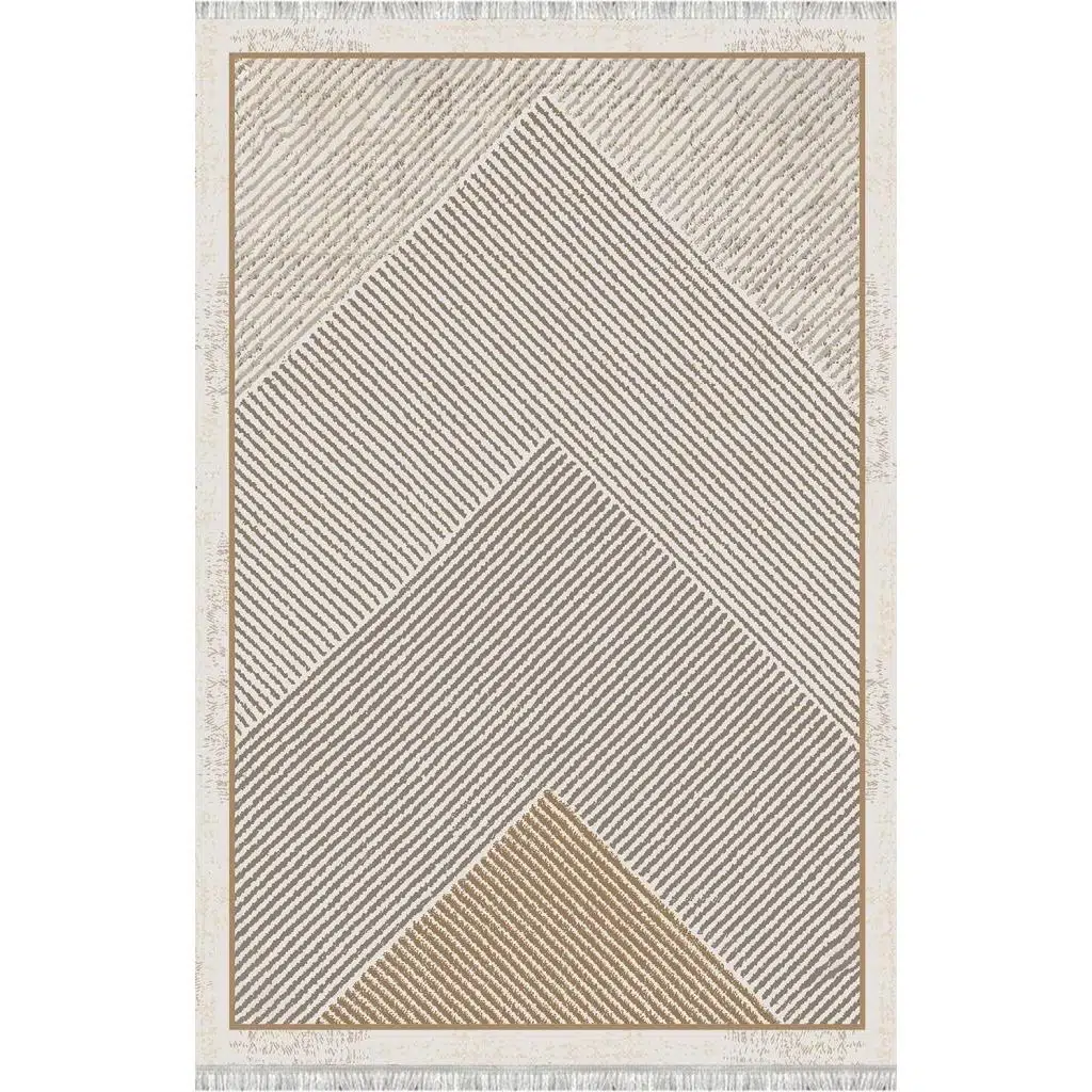 Bu modern tasarımlı dijital baskılı halı, geometrik çizgileri ve sıcak kahve tonlarıyla ev dekorasyonuna zarif bir dokunuş katar. Yüksek çözünürlüklü dijital baskı teknolojisi sayesinde desenler canlı ve net görünür. Kaymaz taban yapısı sayesinde zemine tam tutunur, güvenli kullanım sağlar. Toz tutmayan dokusu ve kolay temizlenebilir kumaşı ile uzun ömürlü ve pratiktir. Salon, oturma odası, yatak odası ve ofisler için ideal bir dekoratif halıdır.