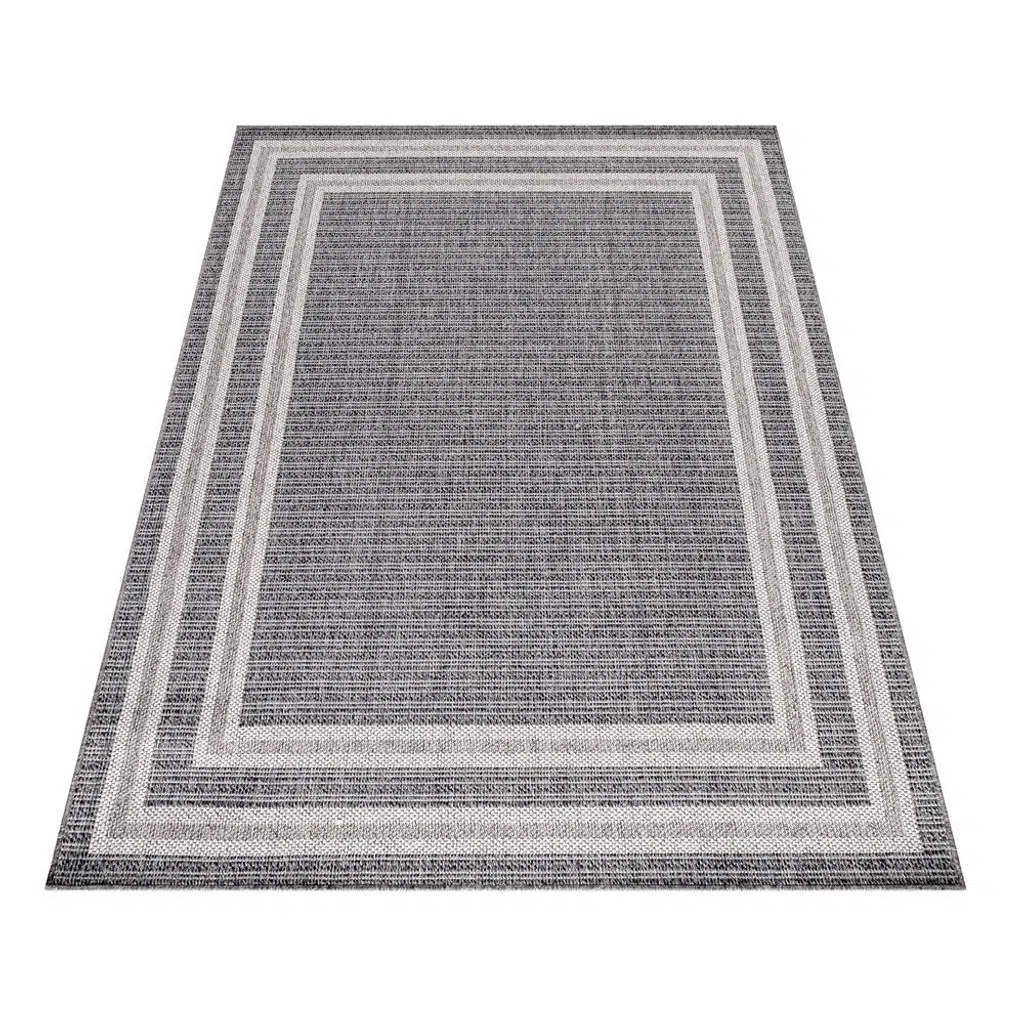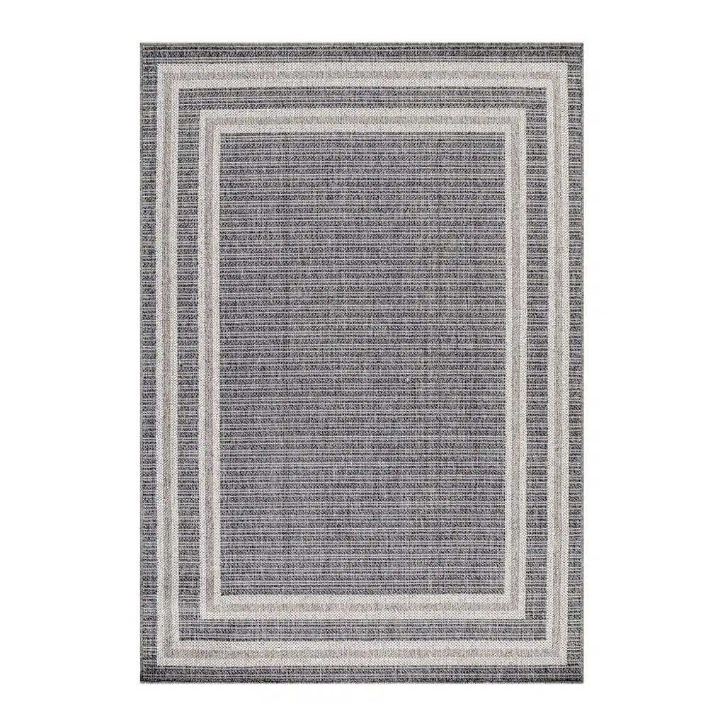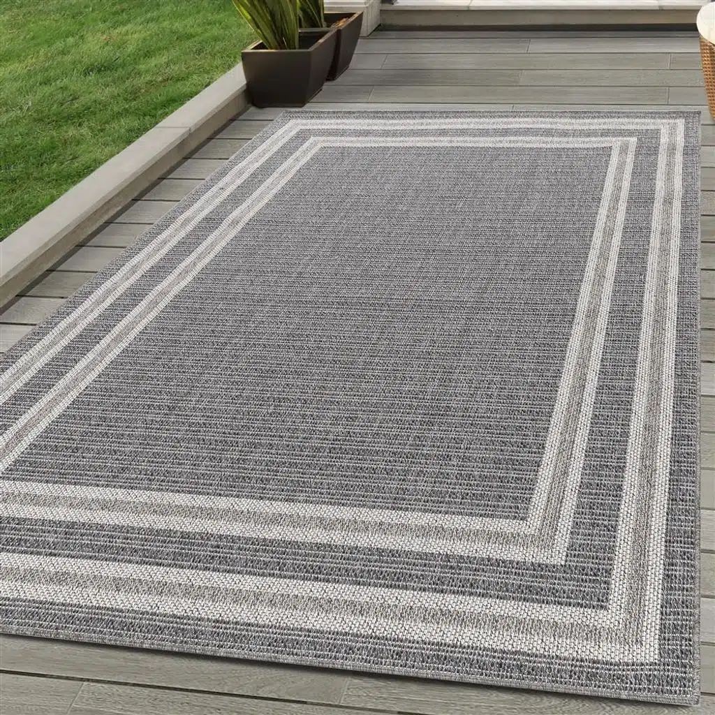 Dış Mekan Teras Halısı Sisal Hasır görünümlü çift bordür desenli Gri Halı