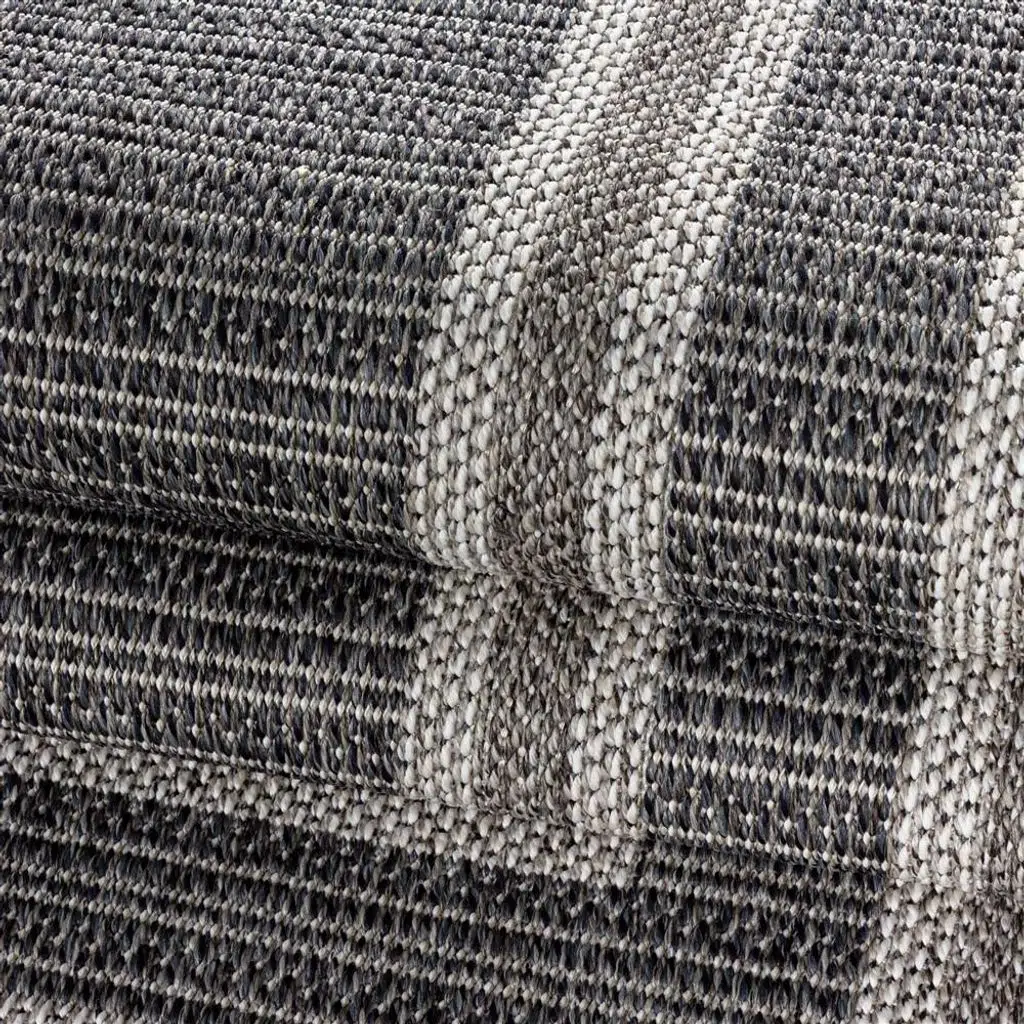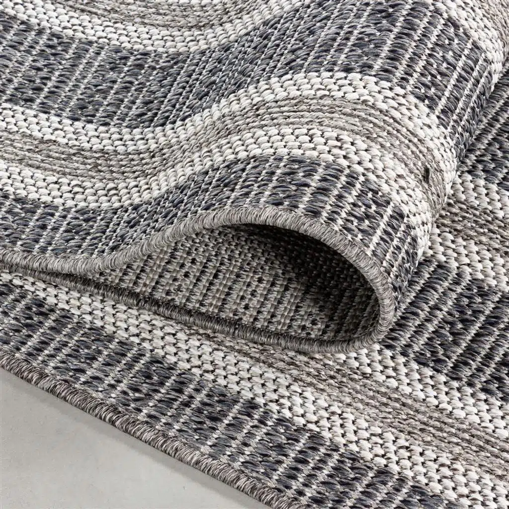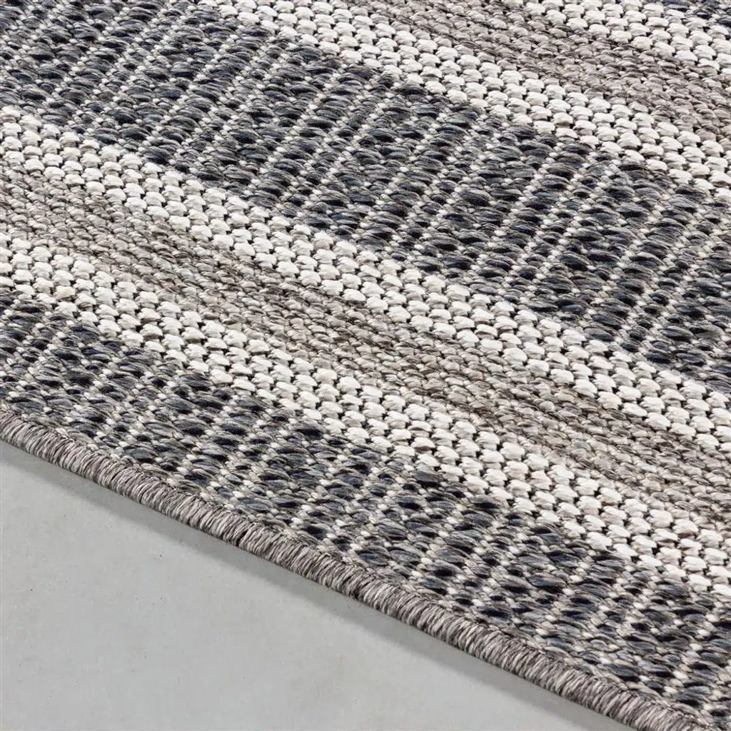 Dış Mekan Teras Halısı Sisal Hasır görünümlü çift bordür desenli Gri Halı