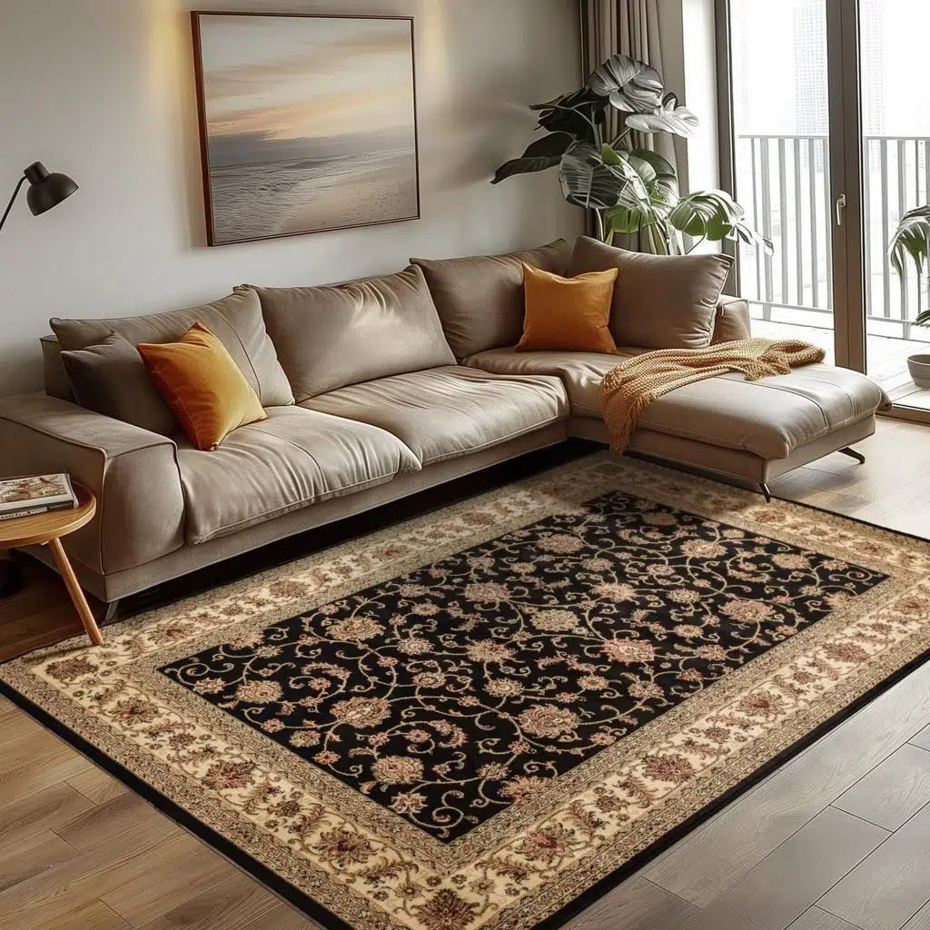 | Etiketler | Klasik desenli Salon Halısı Dokuma Halı Iran tarzı Barok süslemeli Siyah Gold Bej |