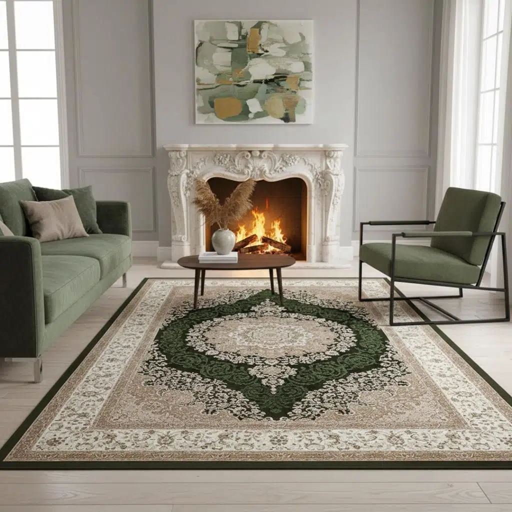 Zamansız tasarımı sayesinde hem klasik hem de modern mobilyalarla rahatlıkla uyum sağlayan bu madalyon desenli halı modeli; salonlar, oturma odaları ve şık yaşam alanları için ideal bir dekorasyon tamamlayıcısıdır. İnce işçilikli klasik motifleri ve dengeli renk geçişleri sayesinde uzun yıllar modasını koruyarak bulunduğu ortama estetik ve prestijli bir hava kazandırır.