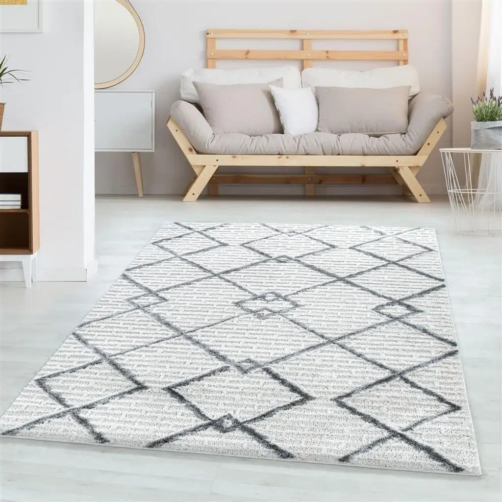 Modern yumuşak Bukle Taban kabartmalı ızgara desenli Halı Krem Gri renklerde