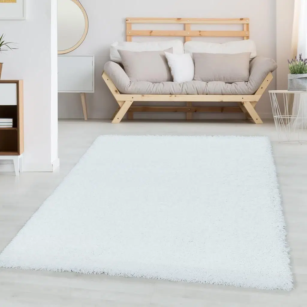 Shaggy Halı Salon halısı yumuşak yüksek havlı düz beyaz renkli