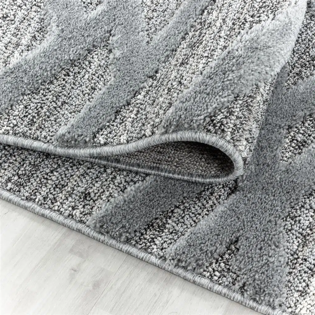 Yuvarlak modern yumuşak Bukle Taban kabartmalı 3D çizgi desenli Halı Gri
